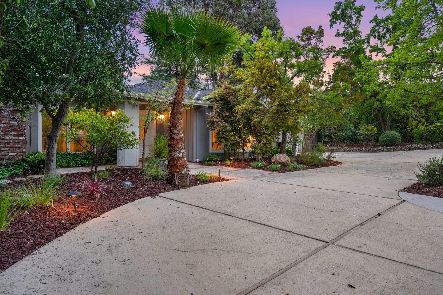 Move in & enjoy this absolutely gorgeous 5 bedroom single-story home with exceptional privacy & huge park-like backyard including sports court, pool & dining patios. Extensively renovated in 2008. Designer touches throughout. Grand formal entry. Gleaming hardwood floors. Bright living room with vaulted ceiling. Elegant large formal dining room. Huge open chef's kitchen with granite countertops, dual islands, breakfast bar, work station, gas range & walk-in pantry. Inviting open kitchen-casual dining-family room areas with vaulted ceiling & great yard views. Wonderful 3rd living area game room with great backyard views & full bathroom with easy pool access. All 5 bedrooms are large. 5th bedroom is next to a bathroom with walk-in shower, perfect for guests. Gorgeous large Primary suite with vaulted ceiling, private deck, great views, 2 walk-in closets & wonderful bathroom. Inside laundry room. Awesome walk-in wine cellar. Entertainer's dream huge backyard with a full sports court, pool with spa & lush landscaping. A private gated access point to college sports fields is wonderfully hidden behind the private & gated backyard landscaping. Attached 2 car garage plus oversized circular driveway open to a quiet yet convenient Los Altos Hills road. World-renowned public schools. Wow.