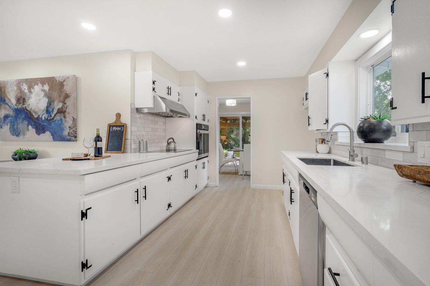 Move in and enjoy this beautiful home with Cupertino schools nestled on a quiet street with one of the best creek views in Silicon Valley. Tucked along the Los Altos border. Beautiful designer touches throughout. Gleaming new floors. Gorgeous open chef's kitchen with quartz countertops. Open dining areas overlooking the front and backyard. Beautifully appointed bathrooms. Spacious bedrooms including a wonderful primary suite on the ground floor. Awesome upstairs entertainment room with covered balcony overlooking the creek. Laundry room and study nook. Exceptional large backyard with lawn and covered patio. Peaceful and majestic creek and redwood tree setting. Double-pane windows. Attached two car garage plus oversized driveway. Near the amenities of Los Altos and Cupertino. Easy access to parks, Cupertino Village, Main Street Cupertino and retails along El Camino Real. Convenient proximity to freeways and back roads to many technology company campuses. Award-winning Cupertino Schools. West Valley Elementary, Cupertino Middle and Homestead High. Seller financing available.