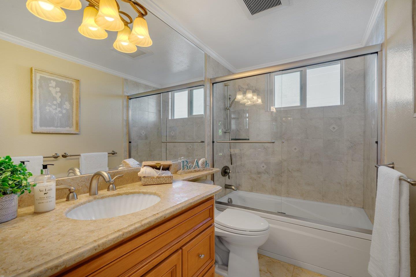 Move in and enjoy this gorgeous four bedroom home with Cupertino schools. Exceptionally renovated throughout. Gleaming floors. Stunning open kitchen with breakfast bar island, wine refrigerator and stainless steel appliances including gas range. Two dining areas. Bright living area. Large downstairs primary suite with luxurious walk-in shower and walk-in closet. All 4 bedrooms are spacious. Second primary suite with ensuite bathroom with walk-in shower. All 3.5 bathrooms are beautiful. Panel doors. Recessed lighting. Double-pane windows and central A/C. Inside laundry room. Beautiful private backyard including deck with awnings, paver dining patio with pergola, fountain, flowers and lawn. Attached 2 car garage plus large driveway. Neighborhood roads to Apple and Alphabet campuses. Convenient freeway access. Award-winning schools. West Valley Elementary, Cupertino Middle and Homestead High.